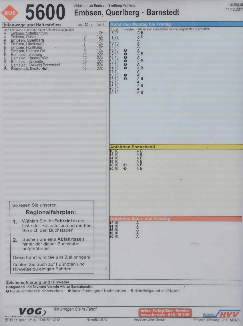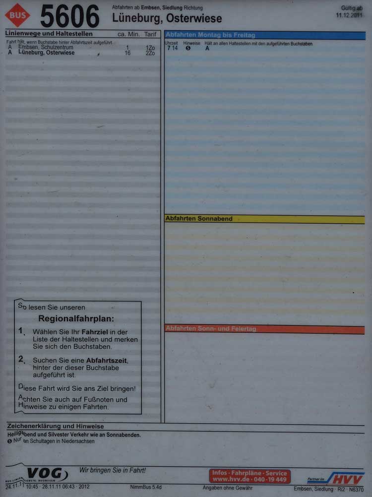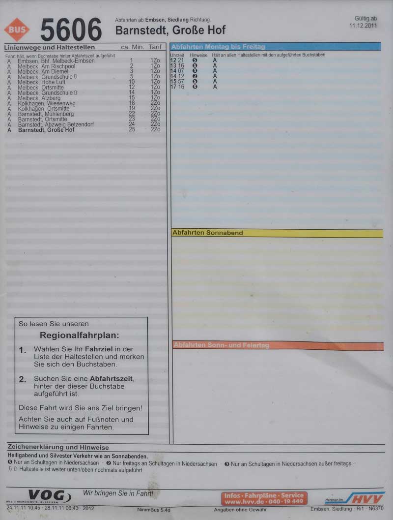 Hier finden Sie alle Busfahrpläne für die Verbindungen welche ab Embsen fahren.